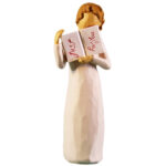 Willow Tree® is an intimate line of figurative sculptures that speak in quiet ways to heal, comfort, protect and inspire. Artist Amin Composite hand carves the original of each figure from her studio in Tehran , Iran. Pieces are cast from her original carvings , and individually painted by hand . Expression is revealed through gestures only a tilt of the head, placement of the hands, A turn of the body. The simplicity of form and absence of facial features signify Willow Tree. It is Amin's hope that these pieces be meaningful to both giver and receiver